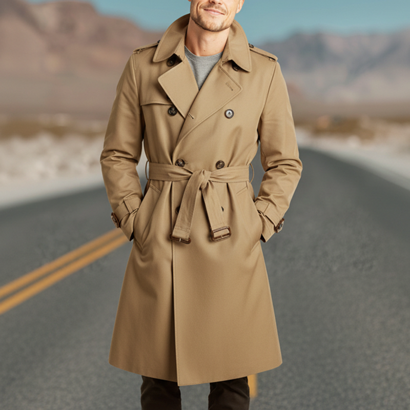 Men's Autumn Fashion Twill Cotton Double-Breasted Trench Coat (Including Belt) MTA1008J0P