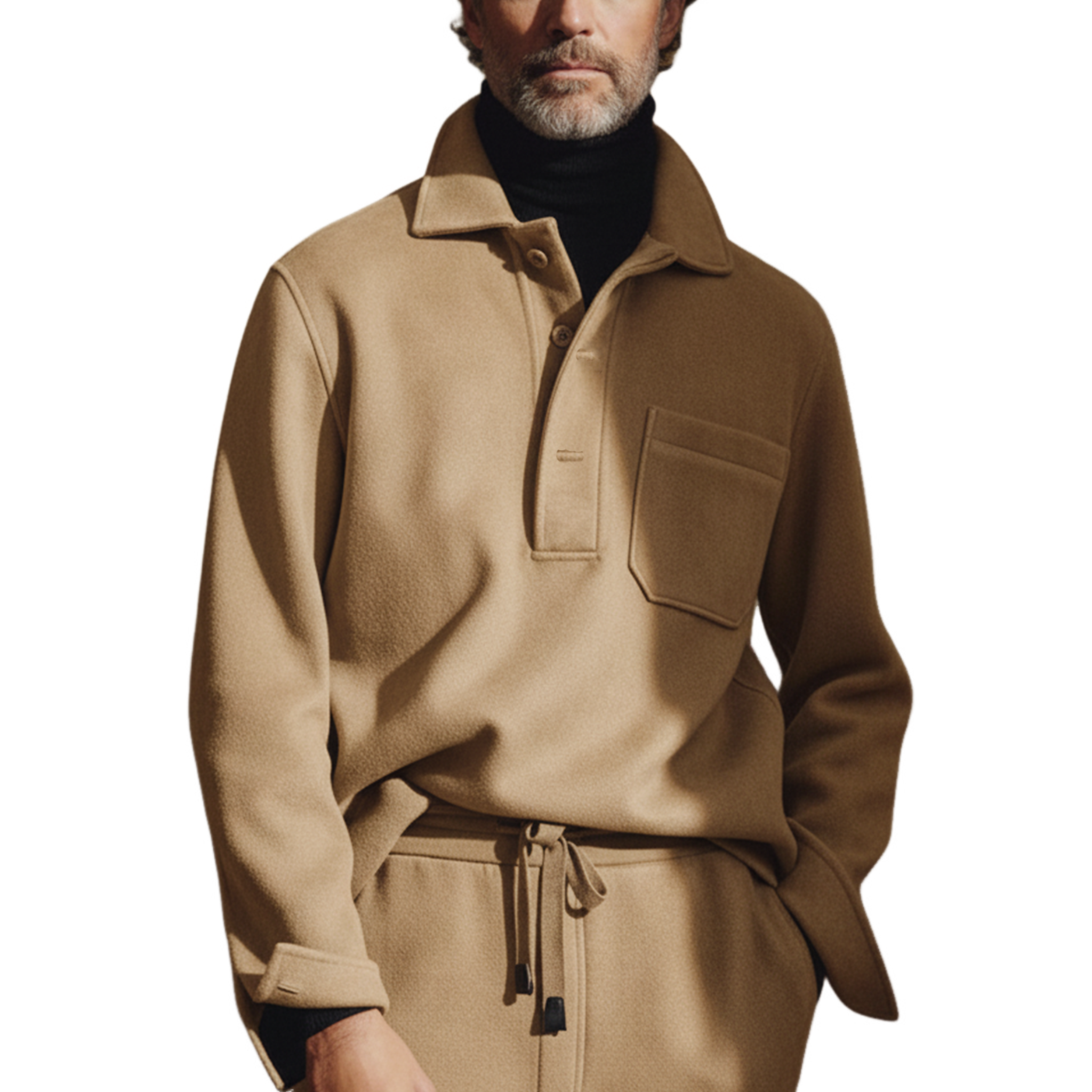 Men's Casual Breathable Cotton Lapel Patch Pocket Slim Fit Short-sleeved Polo Shirt MTA2153F9M