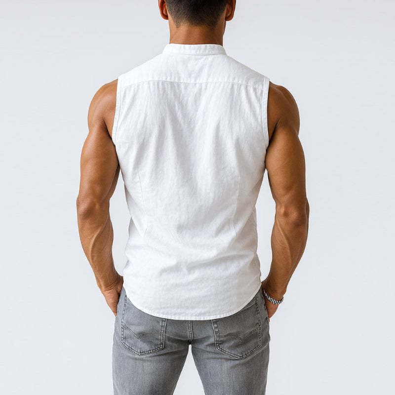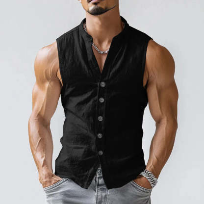 Product Name: Men's Casual Comfort Cotton Stand Collar Single Breasted Sleeveless Shirt