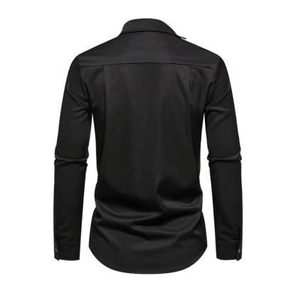 Product Name: Men's Casual Lapel Slanted Placket Asymmetric Slim Fit Long Sleeve Shirt