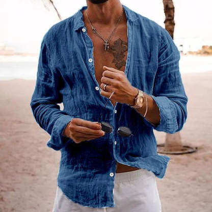 Product Name: Men's Casual Solid Color Lapel Cotton Linen Long-Sleeved Shirt