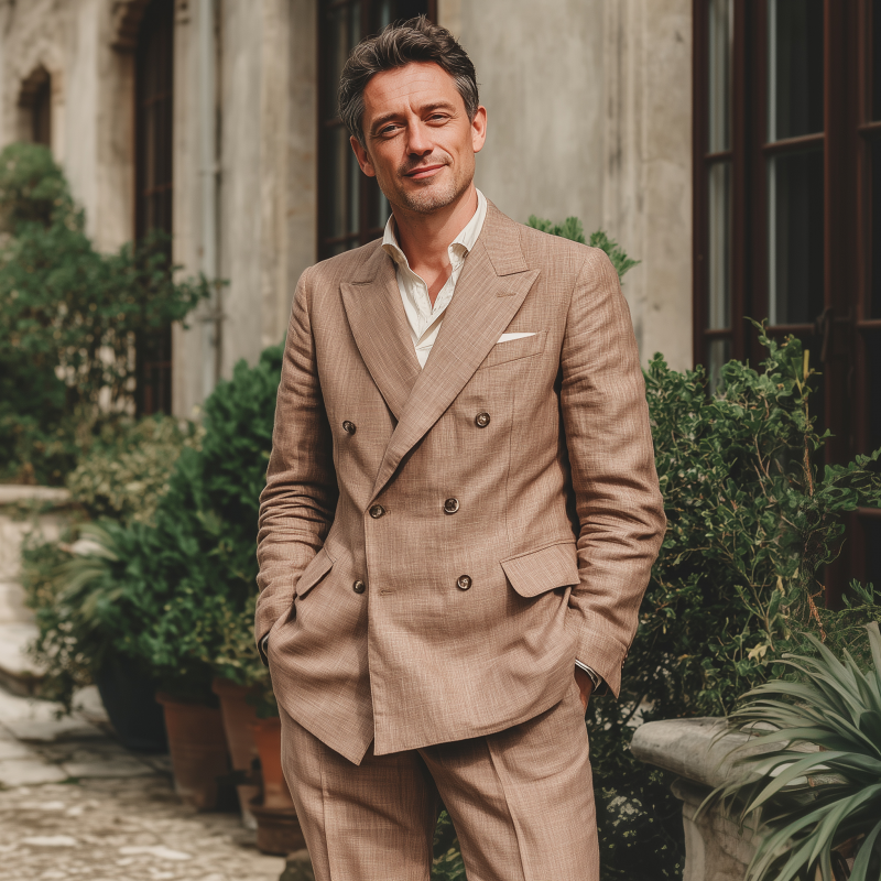 The Men��s Vintage Elegant Breathable Linen Peak Lapel Double Breasted Slim Fit Blazer is a refined and sophisticated wardrobe staple designed for modern men who appreciate classic style with a contemporary twist. Made from high-quality, breathable linen fabric, this blazer offers exceptional comfort, with a vintage-inspired aesthetic. Its peak lapel, double-breasted closure, and slim fit silhouette create a commanding, elegant appearance suitable for formal events, business occasions, or stylish social gatherings. Combining durability, breathability, and timeless design, this blazer is perfect for elevating your look in warm weather.