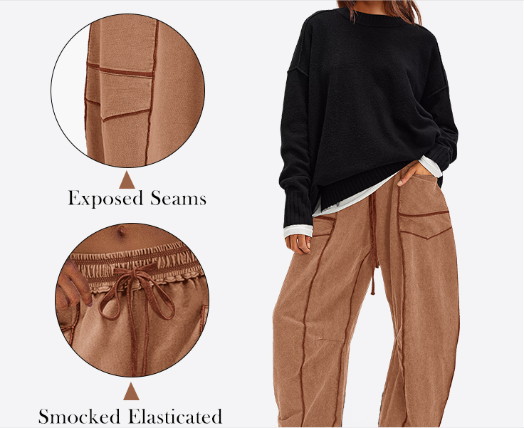 - Womens Baggy Wide Leg Pants:Roomy patch pockets, and raw-cut exposed seams for an edgy yet functional vibe.